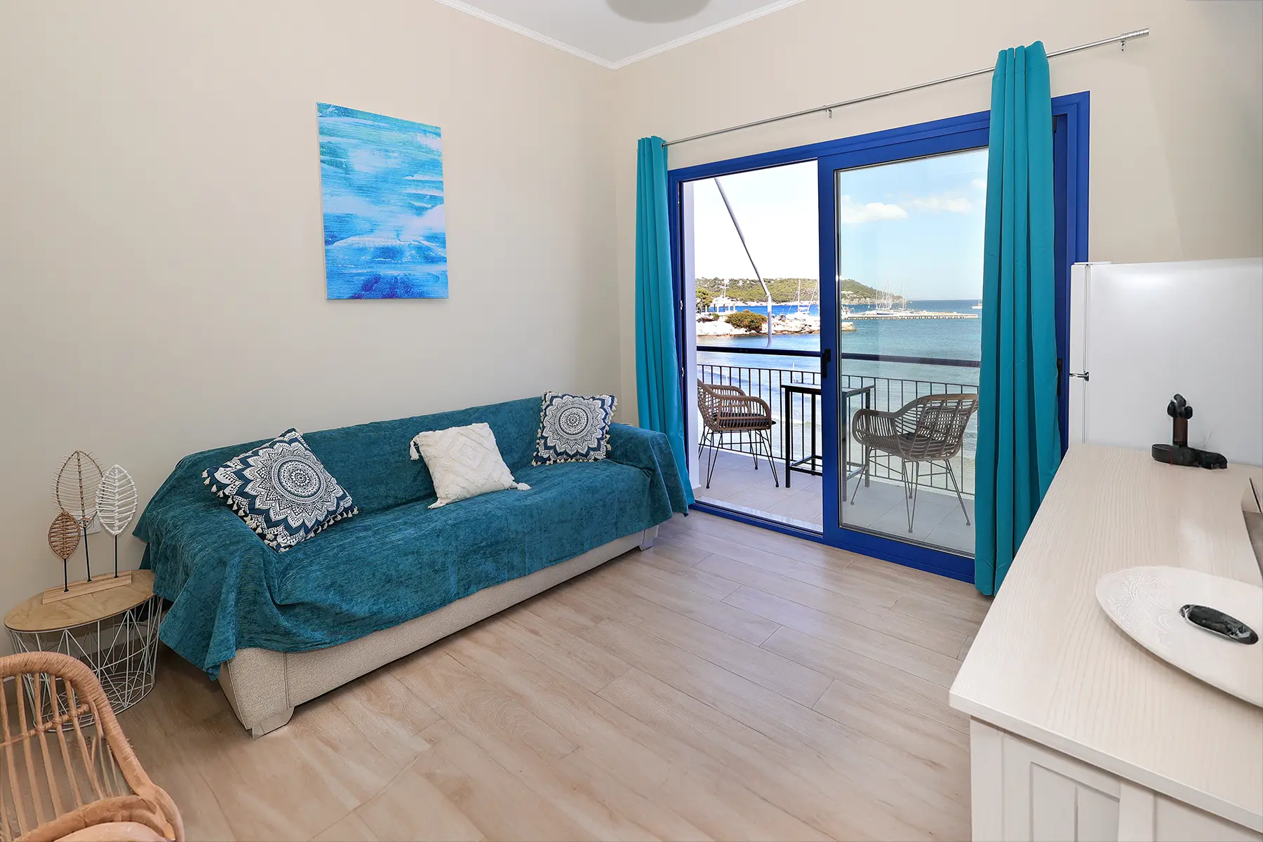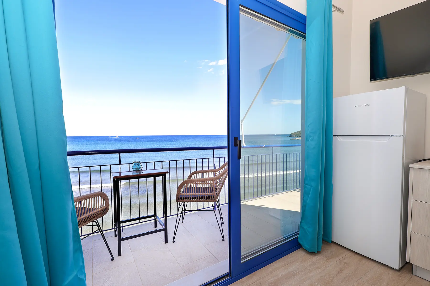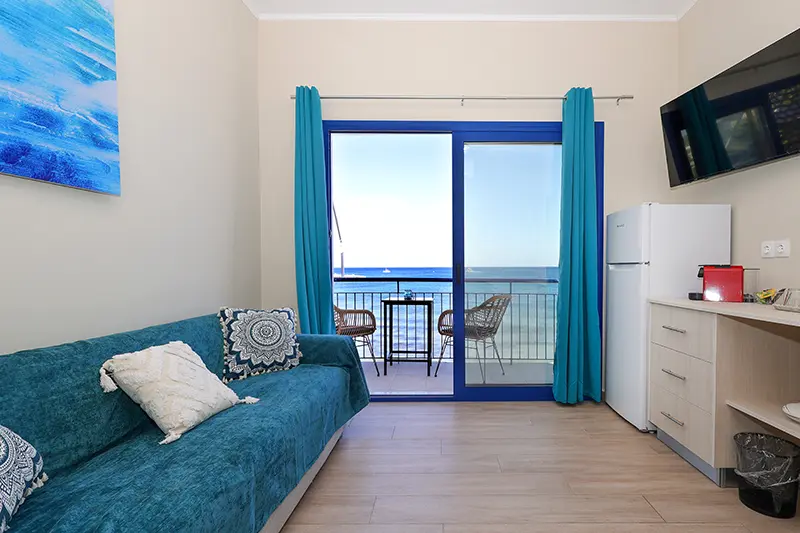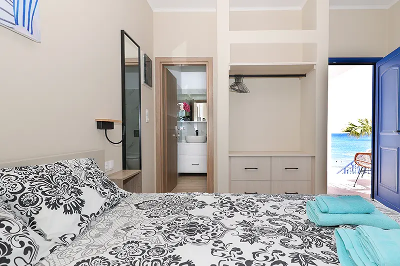 Απολαύστε τις διακοπές σας επάνω στο κύμα με απεριόριστη θέα στη θάλασσα και άμεση πρόσβαση στην βραβευμένη με μπλε σημαία παραλία της Αγίας Μαρίνας, μόλις λίγα βήματα από τη σουίτα σας.
